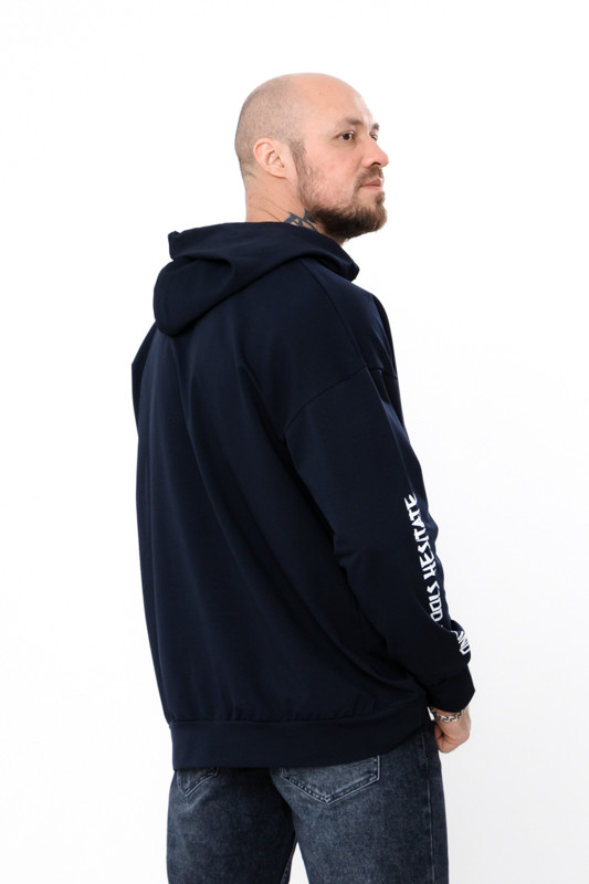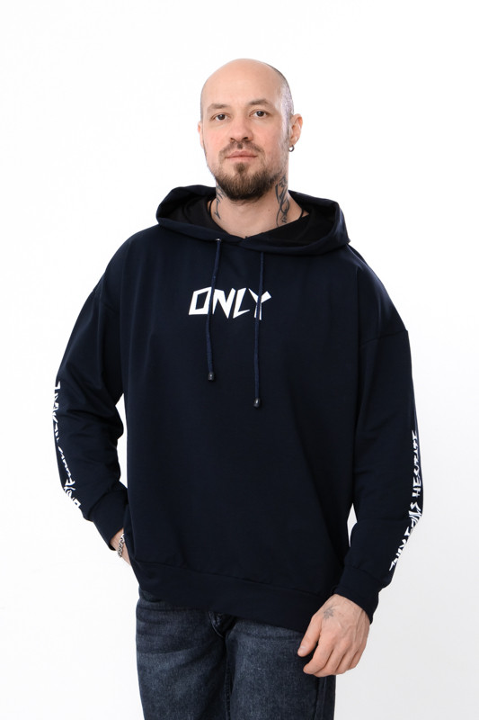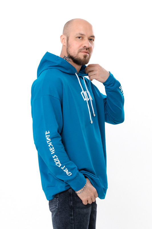 Спортивне худі для чоловіків вільного крою з капюшоном, пошито з однотонної двонитки. Манжети на рукавах і по низу худі виконані з еластичного полотна. Капюшон має шнурок для затягування. На рукаві і спереду нанесений стильний малюнок.Худі з двонитки підходить для: Спорту та активного способу життя – зручна модель для тренувань на вулиці або в спортзалі. Домашнього використання – м'яка тканина та вільний крій роблять худі ідеальним для відпочинку вдома. Подорожей – зручний і практичний одяг для поїздок. Худі чудово поєднується з джинсами або спортивними штанами. Пошитий в декількох кольорах на будь-який смак. Полотно гарної якості. Тому, при правильному догляді, виріб можна буде носити не один сезон. Може давати усадку після прання.