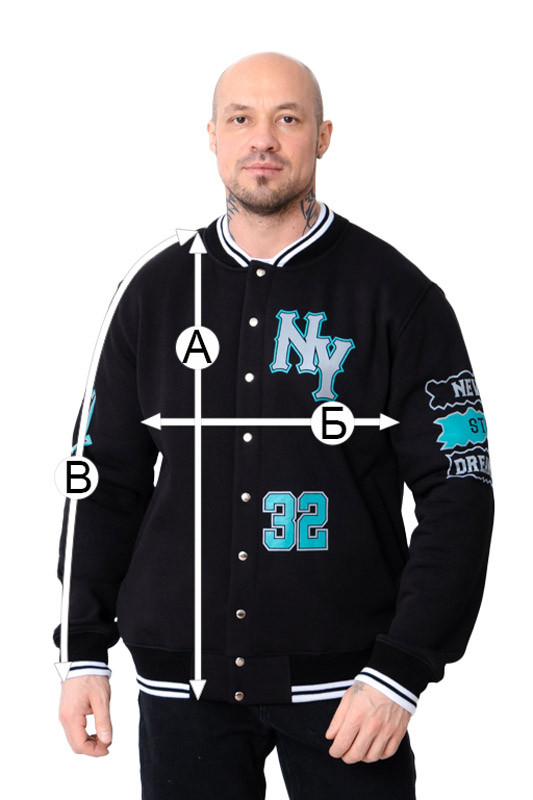 | В - Довжина рукава від горловини, +/-1см | 80 | 80 | 80 | 81 | 82 | 84 |