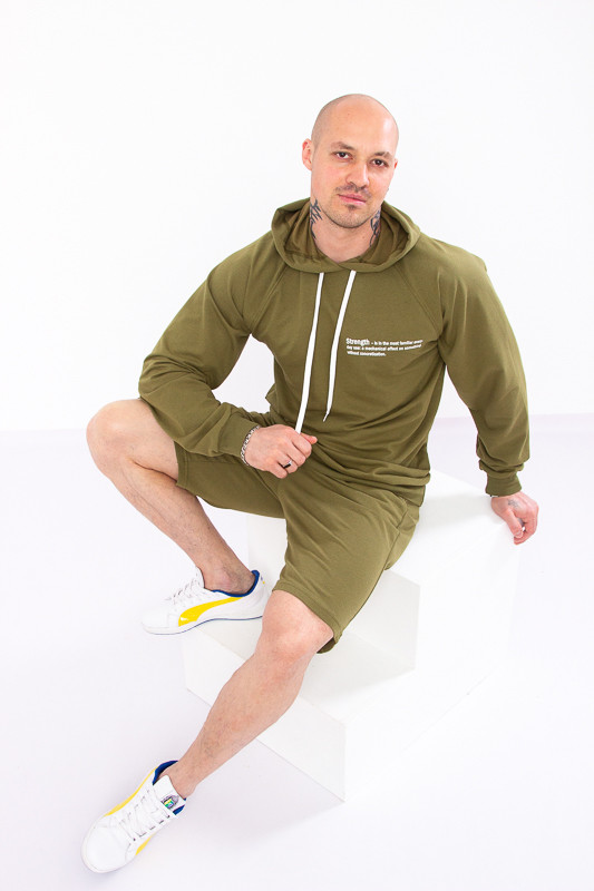 Стильний та зручний комплект складається з худі та бриджів. Худі має капюшон , длинні рукава. Бриджі на широкій резинці, мають дві кишені по бокам. В якості декору принт на худі і бриджаш. Комплект пошитий з однотонної двонитки. Полотно гарної якості. Тому, при правильному догляді, комплект можна буде носити не один сезон. Може давати усадку після прання.