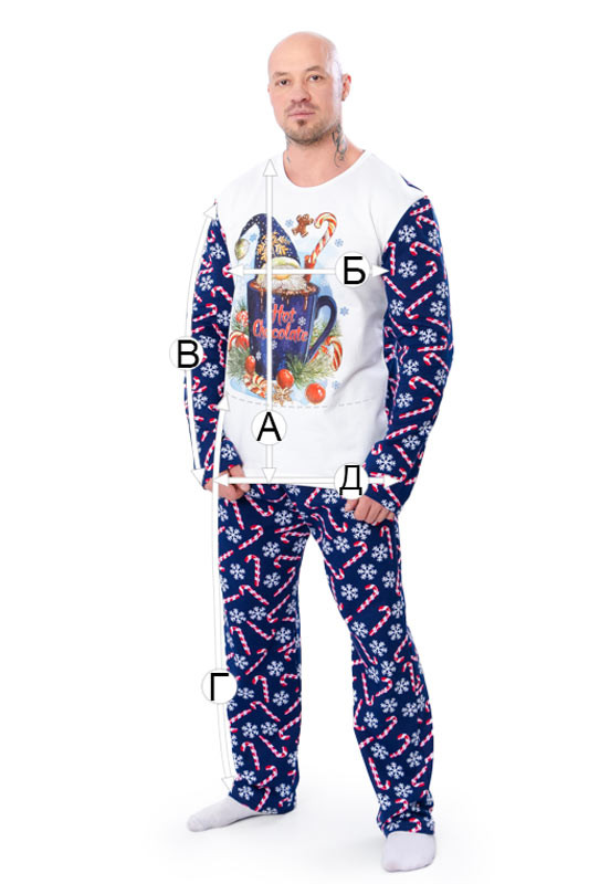 Чоловіча піжама ТМ "Трикотажний Край", виконана з м'якого однотонного начосу. У наборі: кофта, декорована новорічним принтом, та зручні штани на резинці. Якісний легкий матеріал забезпечить максимально комфортний і приємний сон.