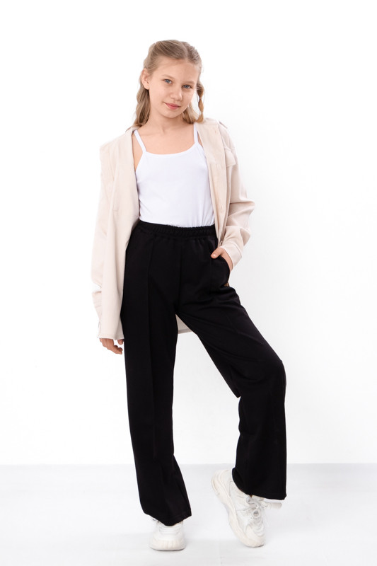 Ці штани створені не просто для зручності — вони додають стилю, легкості й впевненості кожному образу. Модель виконана з приємної до тіла двонитки — практичного трикотажного полотна, яке добре тримає форму, не кошлатиться та чудово “дихає”. Саме те, що потрібно активній дівчинці на кожен день — до школи, на прогулянку або для затишних вихідних вдома.