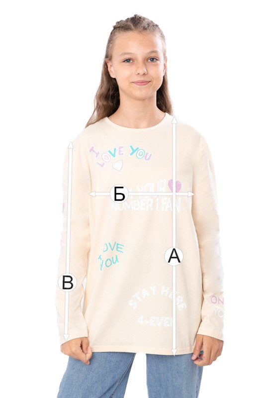Джемпер для дівчаток пошитий з еластичного трикотажного полотна - фулікра. Полотно гарної якості, при правильному догляді не дає усадку, не линяє. Джемпер має округлу горловину, прикрашений сучасним та стильним принтом. Універсальна модель, яку можна носити з джинсами, спортивними штанами або шортами.