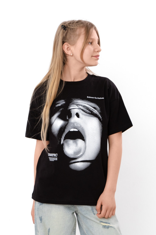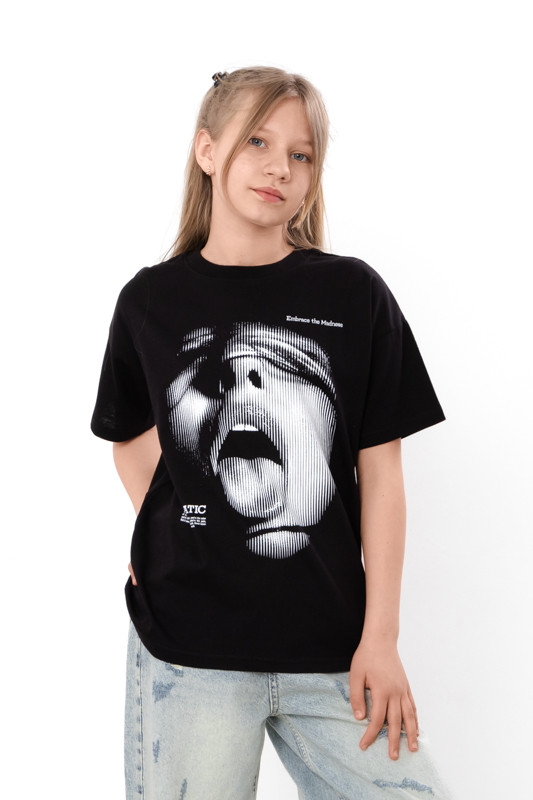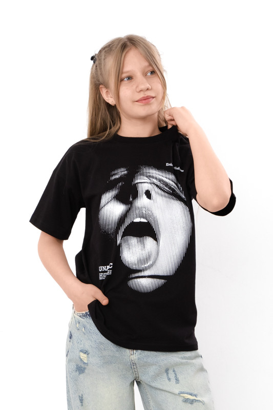 Стильна футболка для дівчинки з легкого куліру. Модель вільного крою, з короткими рукавами та округлим вирізом. Спереду має накатний малюнок. Відмінно комбінується з джинсами, шортами або лосинами. Полотно гарної якості, натуральне за складом, може давати невелику усадку.