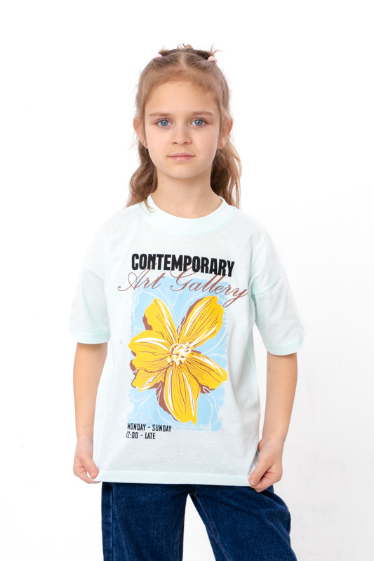 Футболка прикрашена стильним принтом з написом і зображенням — такий дизайн точно сподобається юним модницям. Яскраві кольори — додають настрою та легко поєднуються з улюбленими шортами, штанами або спідницями.