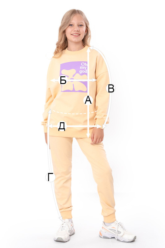 | Г - Довжина штанів по бічному шву, +/-2см | 82 | 86 | 90 | 93 | 97 | 100 |