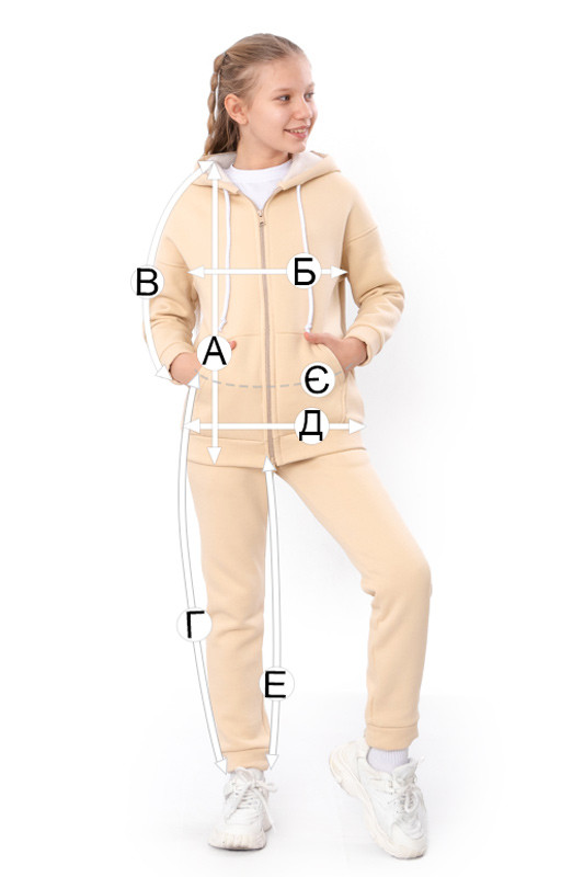 | Г - Довжина штанів по бічному шву, +/-2см | 81 | 85 | 88 | 91 | 94 | 98 |