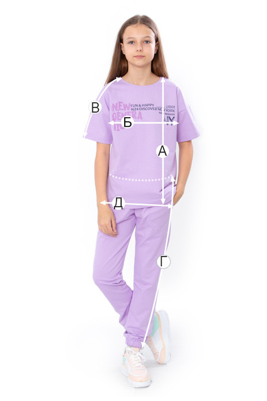 Стильний літній комплект для дівчаток, складається з футболки прямого крою та штанів. Футболка з короткими рукавами, округлим вирізом, спущеною лінією плеча. Спереду стильний накатний малюнок. Штани знизу на резинці, мають кишені у бічних швах. Комплект стане незамінним модним обновленням літнього гардеробу юної модниці, рекомендується доповнити образ об'ємними кросівками, босоніжками в спортивному стилі або кедами.Комплект ідеально підходить для повсякденного використання, активних ігор та прогулянок на свіжому повітрі. Полотно гарної якості. Тому, при правильному догляді, комплект можна буде носити не один сезон. Може давати усадку після прання.