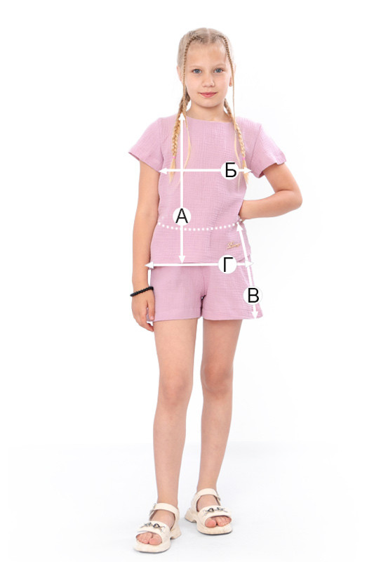 | В - Довжина шортів по бічному шву, +/-2см | 25 | 25 | 26 | 26 | 27 |