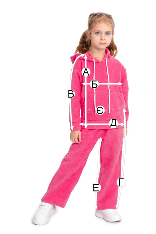 Е - Довжина штанів по кроковому шву, +/-2см |
