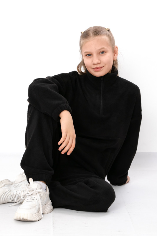 Підлітковий костюм для дівчинки з інтерсофт — це поєднання тепла, комфорту та стильного дизайну, створене спеціально для активних і сучасних дівчат. Матеріал інтерсофт вирізняється унікальною двосторонньою структурою: одна сторона тканини гладка та матова, що надає виробу акуратного вигляду, а інша — пухла, м’яка і тепла, імітує овече хутро, створюючи максимальний комфорт і затишок у холодні дні.