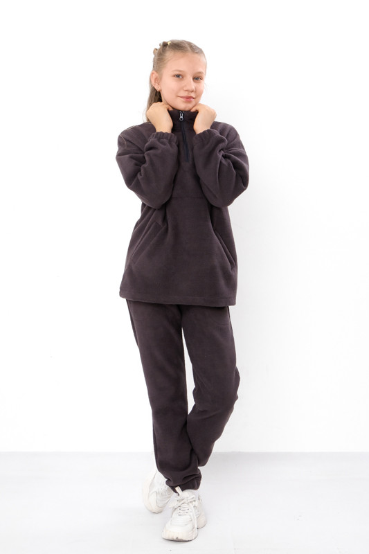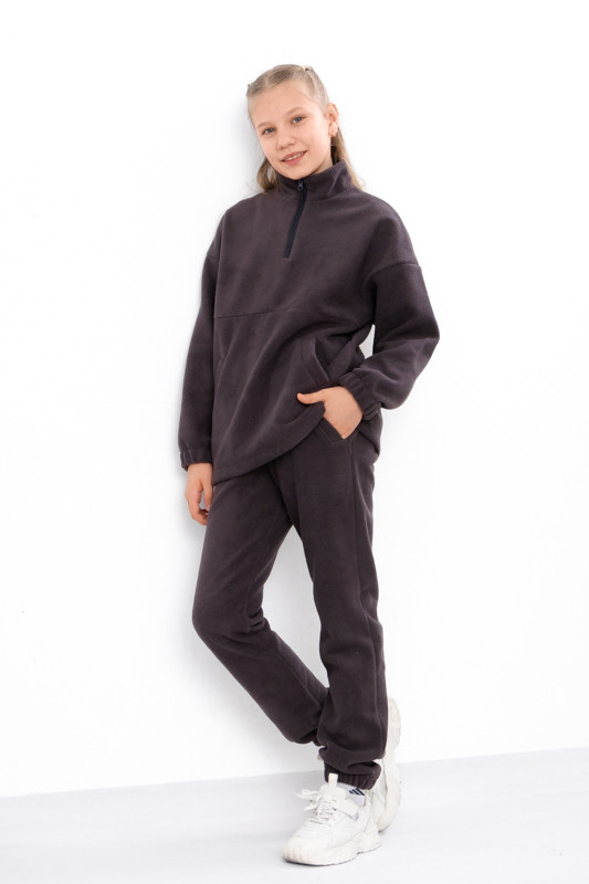 Кофта цього костюма має практичну застібку до середини, що дозволяє легко одягати та знімати річ, а також забезпечує регулювання температури залежно від погодних умов. Зручні кишені на кофті додають функціональності — у них можна сховати маленькі дрібниці або просто зігріти руки. Штани доповнені манжетами з резинкою, які надійно фіксують їх на щиколотках, не даючи холоду проникати, і при цьому не обмежують рухів.