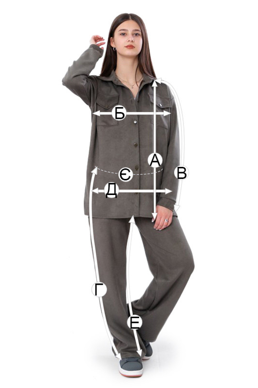| Г - Довжина штанів по бічному шву, +/-2см | 85 | 89 | 92 | 96 | 100 | 103 |