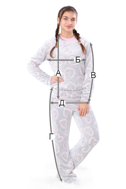 | Г - Довжина штанів по бічному шву, +/-2см | 86 | 92 | 94 | 99 | 103 | 107 |