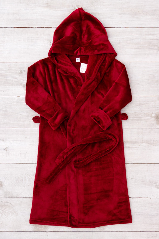 Халат махровий на запах із капюшоном, пояс у комплекті.