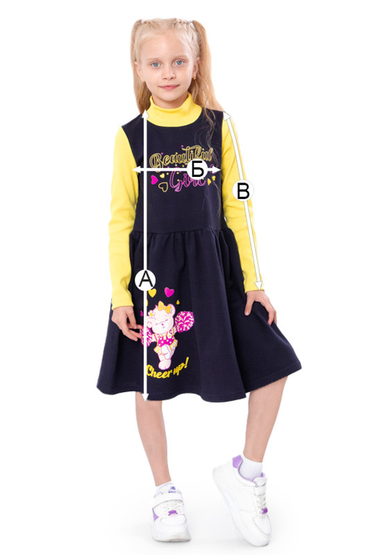 Тепла сукня для дівчинки, пошита з комбінації двох полотен - начосу та рубчику. Рукава та комір-стійка з еластичного рубчику, низ сукні, спинка та перед з начосу. Сукня прикрашена яскравим накатом. Така модель чудово підійде для прохолодної погоди на кожен день. Полотно начос - при пранні дає усадку на 0,5-1 розмір. Полотно рубчик - еластичне, гарно тримає форму.