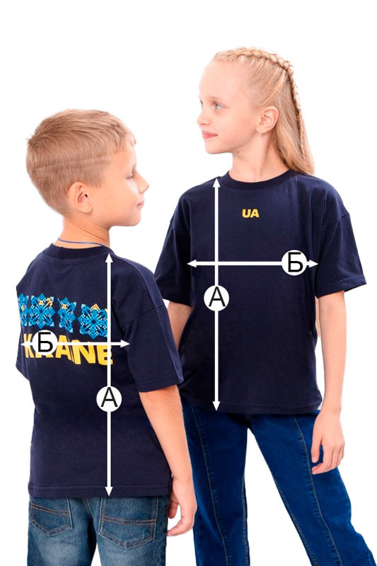 Дитяча футболка прямого крою, пошита з однотонного куліру. Футболка з округлою горловиною та короткими рукавами зі спущеною лінією плечей. Футболка прикрашена патріотичним накатом. Модель чудово поєднується з джинсами, брюками або шортами. Полотно гарної якості, легке, ідеальний варіант для теплої погоди. Може давати невелику усадку після прання.