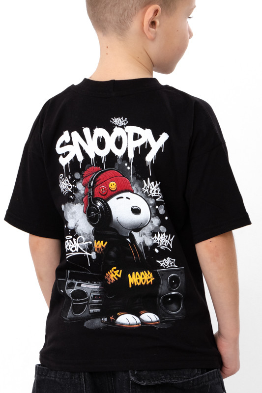 Принт виконаний у сучасному стилі streetwear, який особливо популярний серед молоді та дітей шкільного віку. Така футболка неодмінно сподобається хлопцям, які цікавляться музикою, технологіями або просто хочуть виглядати круто.