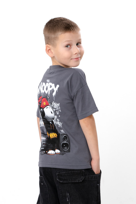Футболка має класичний вільний крій з коротким рукавом і круглою горловиною — ідеальний варіант для повсякденного носіння. Такий фасон забезпечує свободу рухів, що особливо важливо для хлопців, які постійно перебувають у русі.