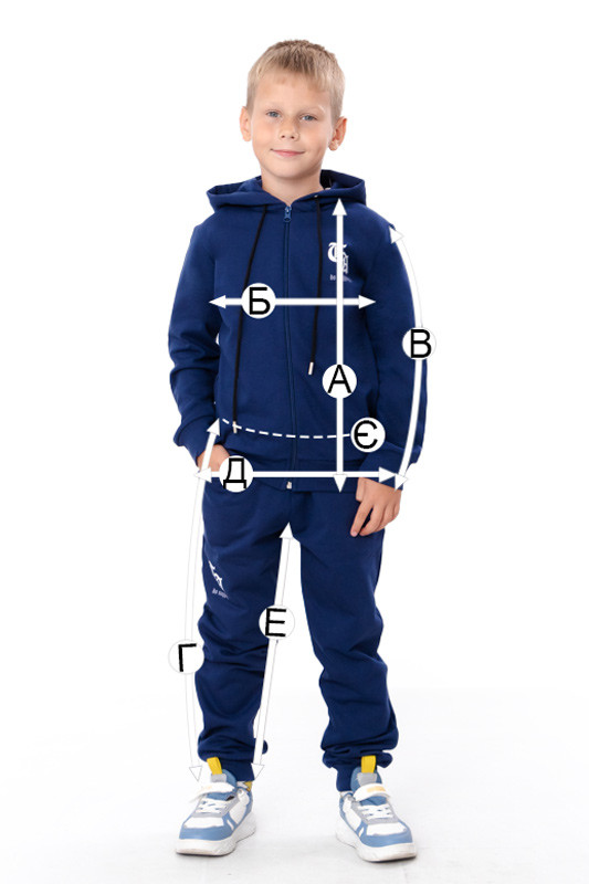 | Е - Довжина штанів по кроковому шву (+/-2см) | 39 | 41 | 44 | 47 | 51 | 54 | 57 | 60 |