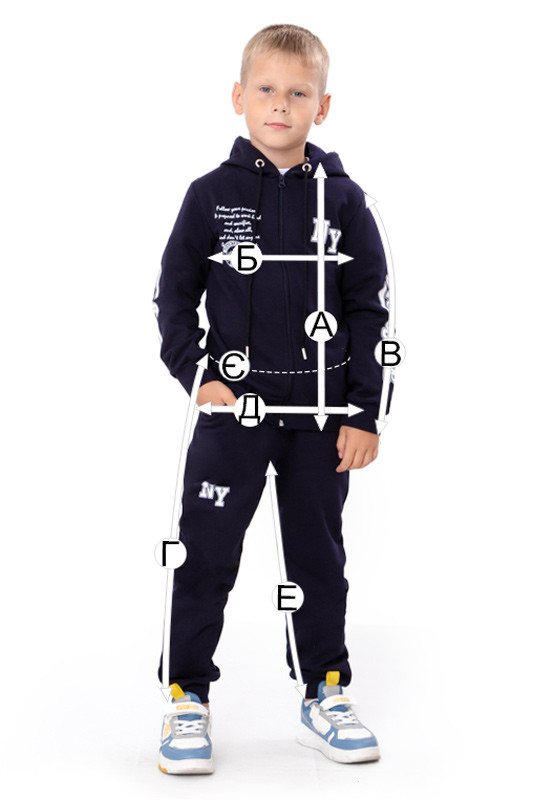 | Г - Довжина штанів по бічному шву, +/-2см | 60 | 63 | 66 | 70 | 74 | 78 | 82 |