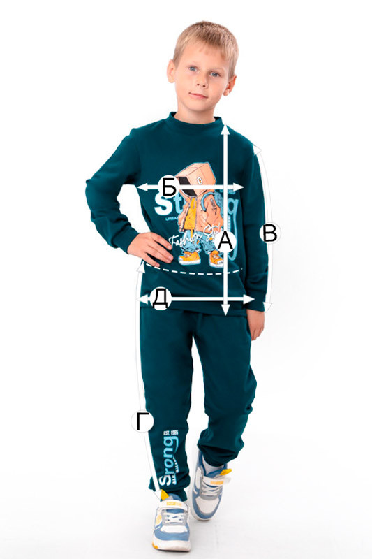 Хлопчаки люблять спортивний стиль одягу, особливо м'які, зручні костюми. Український виробник-компанія «Трикотажний Край», представляє чудову модель з натуральної бавовни. Комплект складається з джемпера і брюк. Верх костюма з круглою горловиною, декорований принтом, рукава і низ доповнені еластичними манжетами. Штани на широкій гумці зручно сідають по фігурі, забезпечують комфорт під час руху. В костюмі буде зручно подорожувати, грати з друзями на дитячому майданчику, гуляти на свіжому повітрі. Речі, що входять до комплекту, поєднують в собі високу якість, практичність і прийнятну вартість.