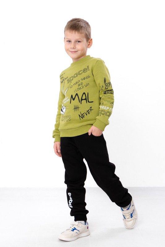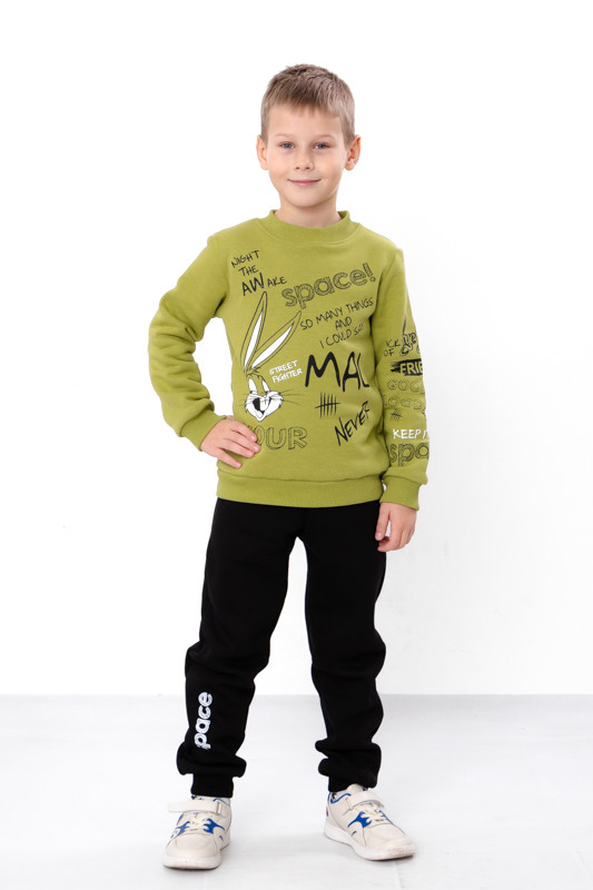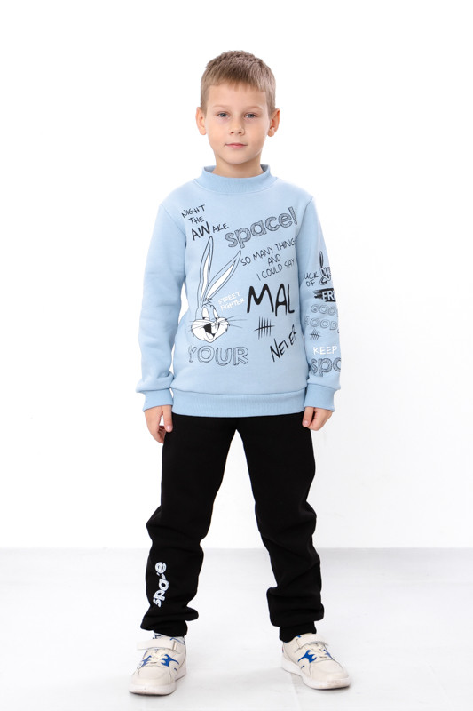 Спортивний костюм, утеплений для хлопчика, обов'язково сподобається дітям. Дитячий зимовий костюм виконаний з якісного полотна футер з-хнитка (80% бавовни, 20% поліестру); складається з світшота та штанів. Світшот вільного крою, з округлим вирізом горловини декорований принтом, низ та рукави оформлені манжетами. Штани з бічними кишенями на широкому еластичному поясі з гумкою. Низ брюччини на манжетах. Стильний теплий комплект з начосом чудово впишеться у повсякденний дитячий гардероб, його можна одягнути восени, взимку та навесні. Модний дитячий комплект може стати гарним варіантом для прогулянок, походу до саду, школи. Костюм трикотажний дуже зручний у носінні, Вашій дитині буде неймовірно комфортно в ньому.