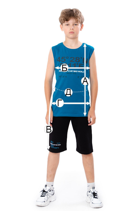 Комплект для хлопчика складається з афганки та шортів. Афганка виконана з 100% бавовняного полотна кулір, шорти з однотонної двонитки. Афганка має округлу горловину, спереду нанесений накатний малюнок. Шорти на широкій м’якій резинці, по бокам є кишені. На шортах також є невеликий накатний малюнок. Комплект чудово підійде для активних прогулянок та повсякденного носіння влітку.
