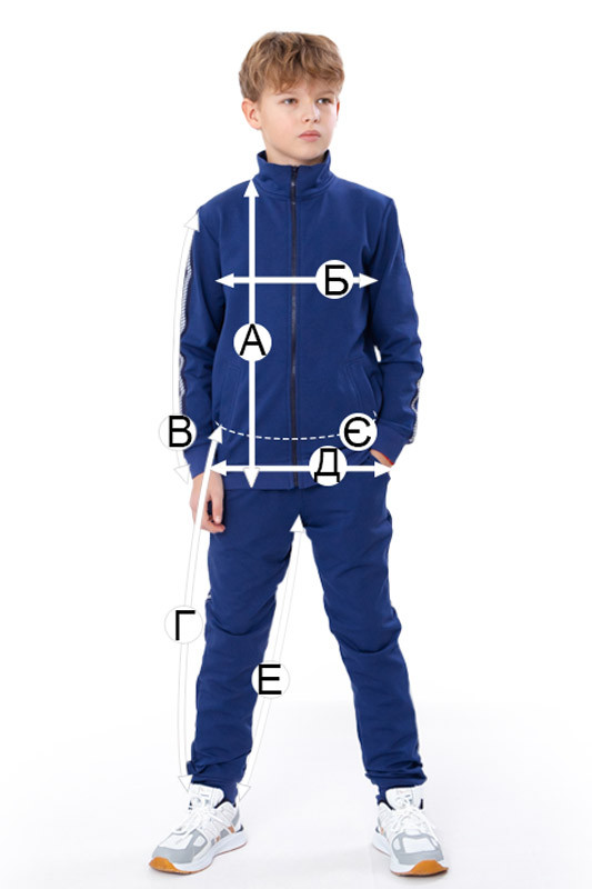 | Е - Довжина штанів по кроковому шву (+/-2см) | 62 | 65 | 68 | 71 | 74 | 79 | 83 |