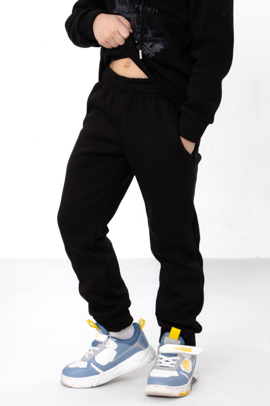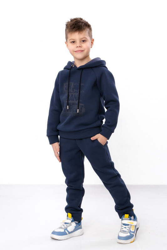 Цей стильний костюм для хлопчика стане улюбленим елементом його гардеробу. Кофта з капюшоном, прикрашена принтом на грудях та одному рукаві, що надає костюму модного вигляду. Штани мають зручні кишені та регулюються шнурками на поясі, забезпечуючи ідеальну посадку та комфорт під час руху. Виготовлений з м'якої та якісної тканини - трьохнитка (80% бавовна, 20% поліестер), цей костюм підходить для активного відпочинку та повсякденного носіння.