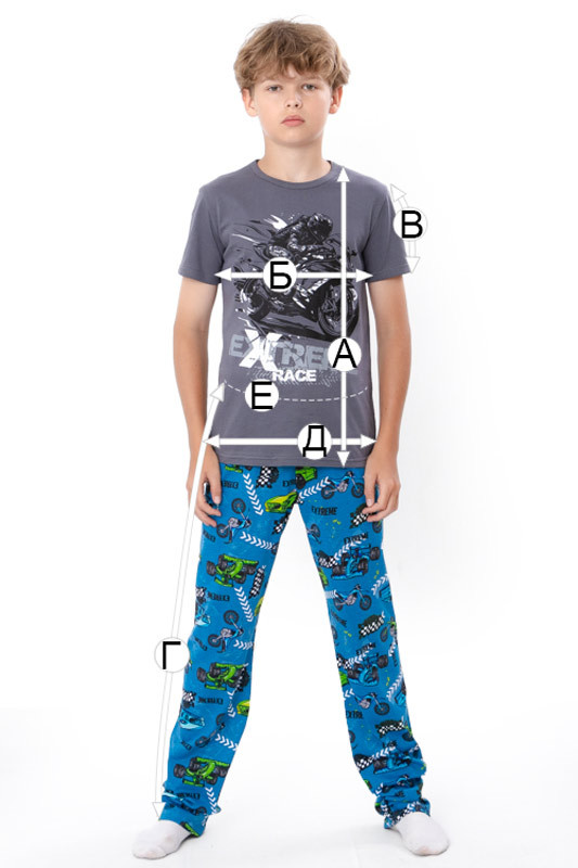 Зручна та комфортна піжама для хлопчиків, виготовлена з м'якого та дихаючого куліру — ідеальний вибір для ночівлі або відпочинку вдома. Кулір забезпечує м'якість і еластичність, не обмежуючи рухів, а також добре зберігає форму після прання.Набір складається з футболки з коротким рукавом і штанів вільного крою.Піжамка зшита з 100% бавовняного полотна - кулір. Матеріал міцний, м'який і не вибагливий у догляді. Його можна прати при температурі 30 ° C і прасувати праскою, вибравши 110 ° C на регуляторі.