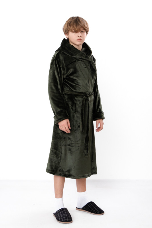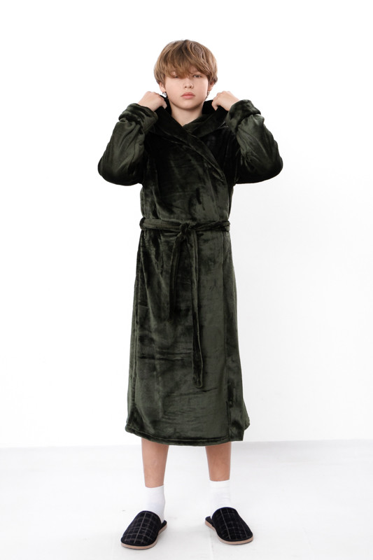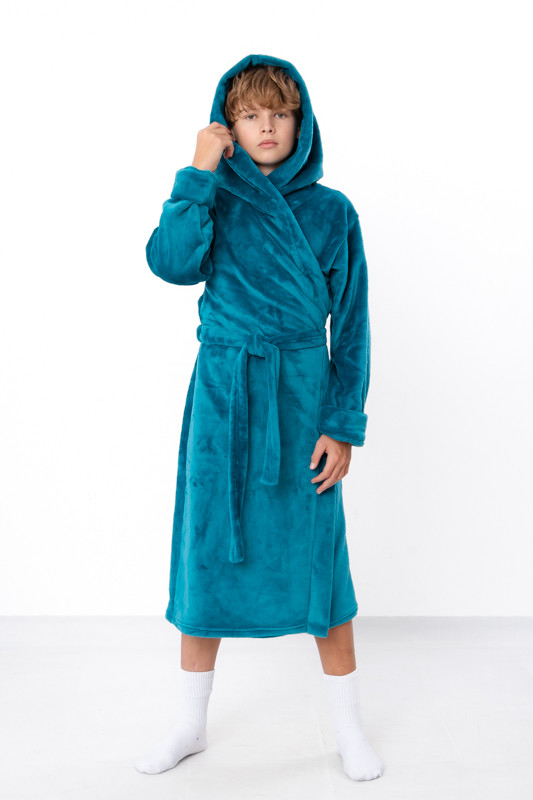 Халат махровий на запах із капюшоном, пояс у комплекті.