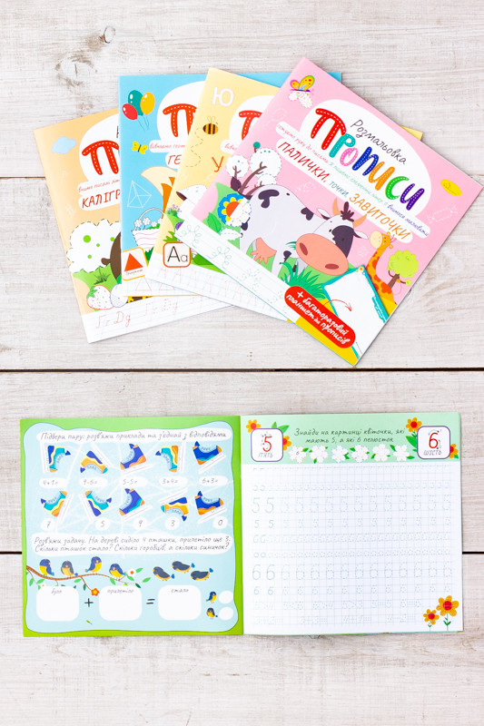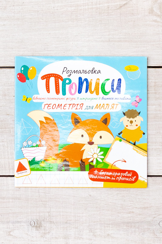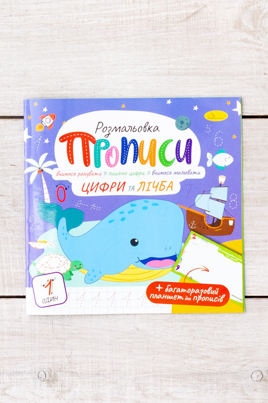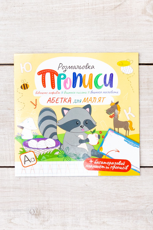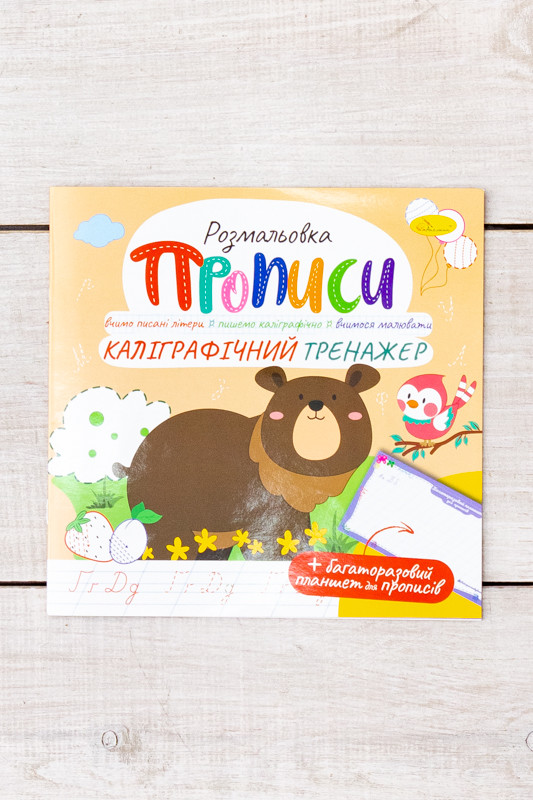 Прописи та розмальовка містять завдання для розвитку письма та каліграфії. У комплекті багаторазовий планшет для каліграфії, на якому можна писати фломастерами, стирати та писати знову. Включає прописи, картинки для розфарбовування та завдання для розвитку дрібної моторики, мислення та уваги. Обкладинка з м'якого крейдованого паперу, 12 сторінок (6 аркушів), розмір 210х210 мм.