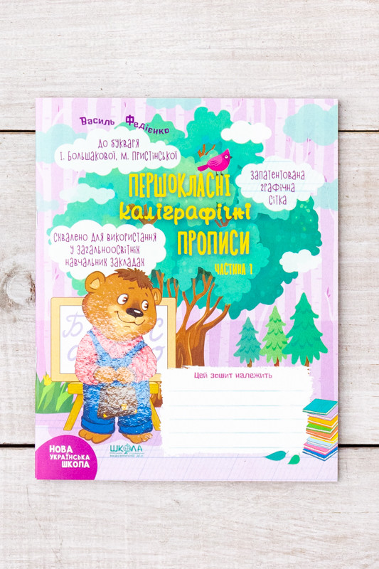 Навчальний посібник. ПЕРШОКЛАСНІ КАЛІГРАФІЧНІ ПРОПИСИ ДО БУКВАРЯ І. БОЛЬШАКОВОЇ, М. ПРИСТІНСЬКОЇ. ЧАСТИНА 2. ПЕРШОКЛАСНИЙ ЗОШИТ. Автор Василь Федієнко. Схвалено для використання у загальноосвітніх навчальних закладах. 48 стор.