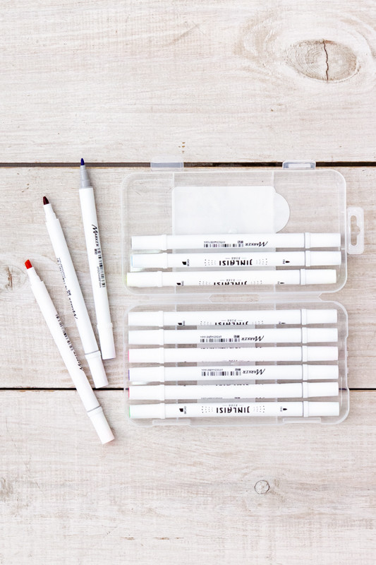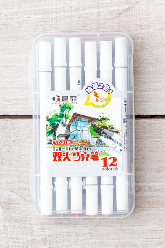 Двосторонній фломастер підходить для скетчів, малюнків та ілюстрацій. Один кінець має тонке перо "Fine", інший — товсте скошене "Broad". Це дозволяє створювати як дрібні, так і великі деталі. Фломастери на спиртовій основі з насиченими кольорами. Упаковка — пластиковий бокс розміром 17 х 9,5 х 3 см.