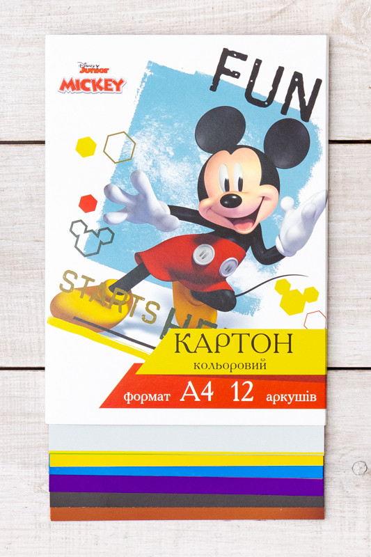 Кольоровий картон 12 аркушів односторонній