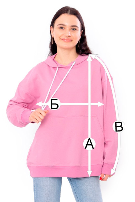 | В - Довжина рукава від горловини, +/-1см | 73 | 76 | 78 |