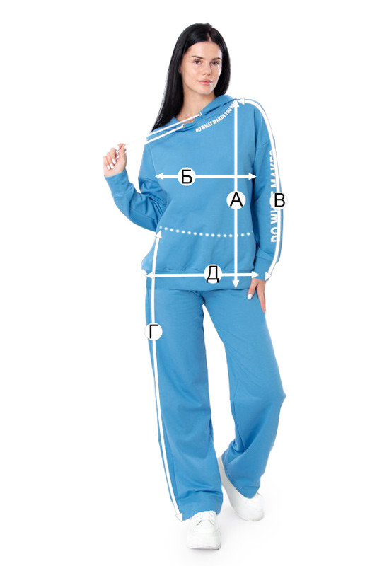 Стильний жіночий костюм з однотонної двонитки. Складається з худі та штанів вільного прямого крою. Худі з капюшоном, який регулюється шнурком. На рукаві та спереду худі нанесений накат в якості декору. Штани на широкій зручній резинці теж зі шнурком для регулювання на талії. По бокам є кишені для зручності. Такий костюм відмінно підійде для повсякденного носіння в прохолодну погоду. Пошитий в декількох кольорах на будь який смак. Костюм можна доповнити кедами або кросівками. Полотно гарної якості. Тому, при правильному догляді, його можна буде носити не один сезон. Може давати усадку після прання.