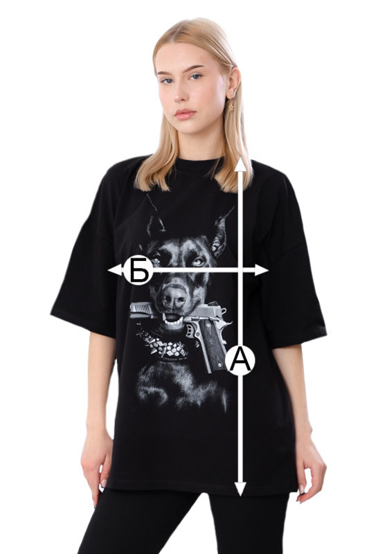 Жіноча футболка оверсайз від Трикотажний Край — це сміливе поєднання стилю та комфорту. Виготовлена з якісної фулікра — еластичної та приємної до тіла тканини, вона дарує максимальну зручність і добре тримає форму. Дизайн привертає увагу — ефектний принт добермана з пістолетом у зубах додає образу впевненості та характеру. Така футболка ідеально пасує до повсякденного гардеробу, дозволяючи легко створювати сучасні та зухвалі луки.