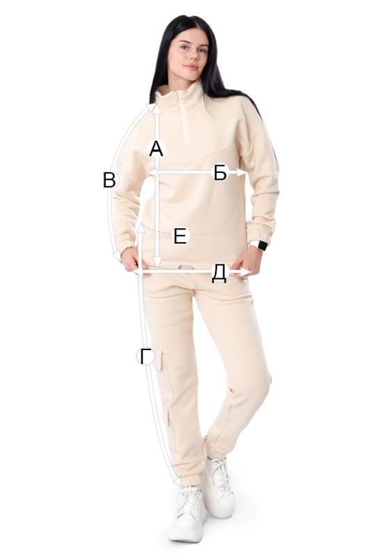 Костюм зручний і комфортний, виготовлений із трьохнитка петля з начосом (60% бавовна, 25% віскоза, 12% поліестер, 3% еластан).