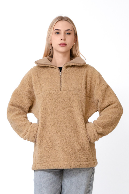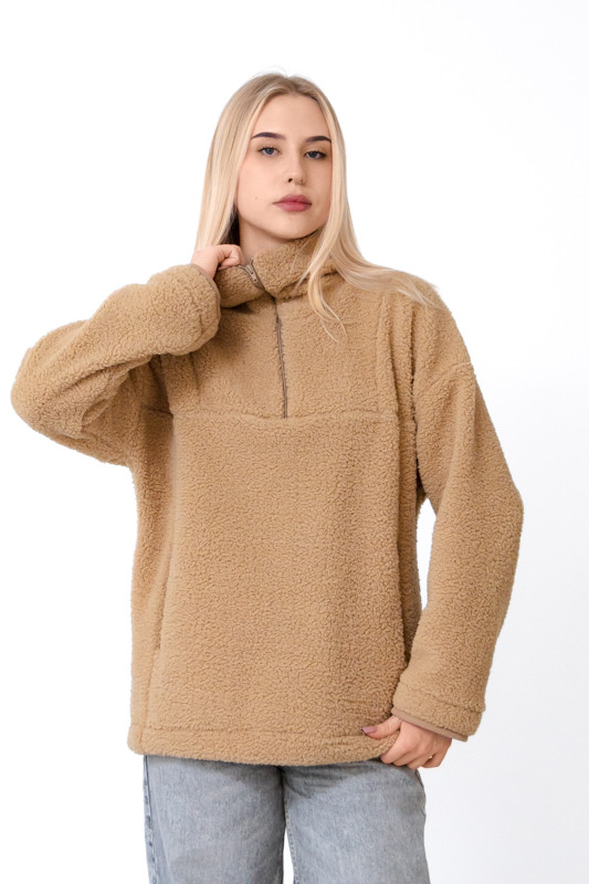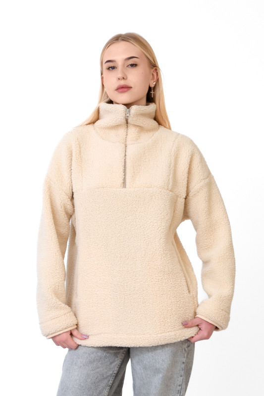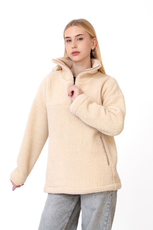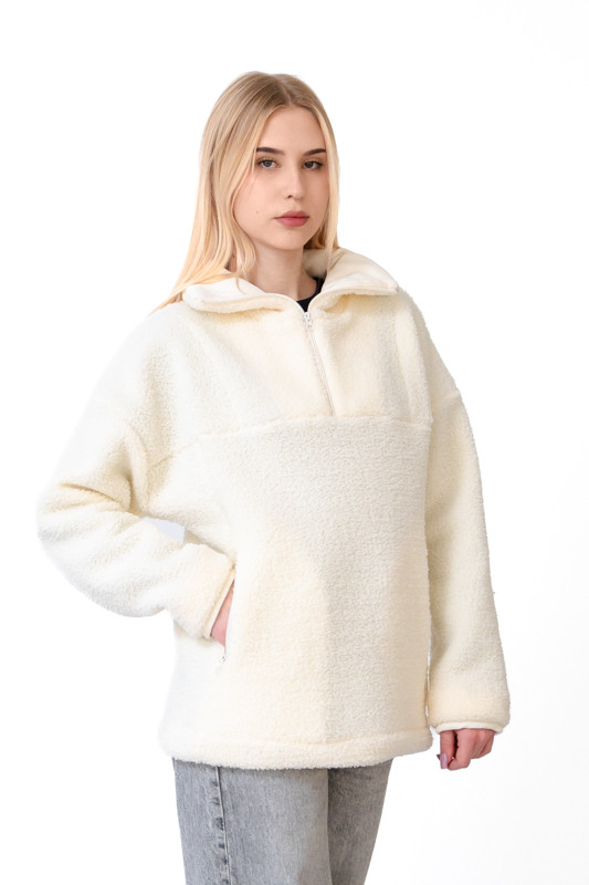 Жіночий джемпер із штучного хутра «баранчик» — це ідеальне поєднання затишку, сучасного стилю та практичності для прохолодної пори року. Такий виріб створений для тих, хто цінує комфорт у повсякденному одязі, але не готовий відмовлятися від актуального зовнішнього вигляду. М’яка фактура тканини дарує відчуття тепла й ніжності з першого дотику, огортаючи тіло легкістю та приємною пухнастістю. Джемпер виглядає об’ємно та водночас акуратно, створюючи модний силует, який легко вписується в гардероб сучасної дівчини.