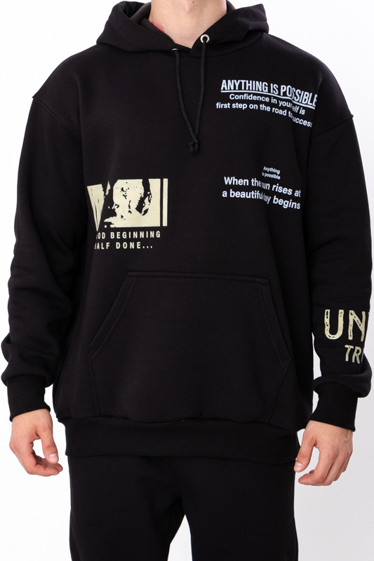 Худі має просторий силует, створює відчуття невимушеності та затишку. Доповнено капюшоном та кишенею кенгуру, що робить його ідеальним вибором як для прогулянок містом, так і для активного відпочинку. Стильний принт на грудях та рукаві, що надає модного акценту і робить річ більш оригінальною. Принт надає худі унікальності і дозволяє поєднувати його з різноманітними елементами гардеробу, створюючи сучасні та ефектні образи.