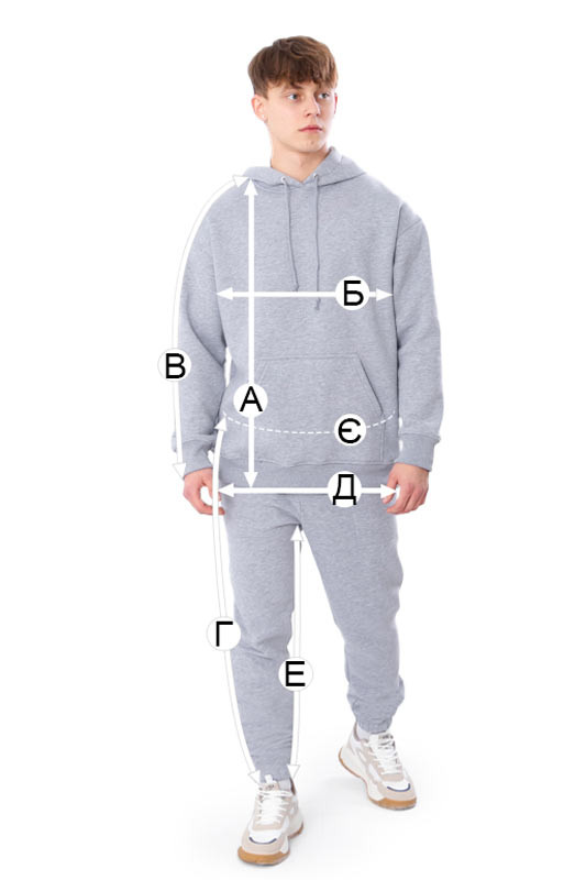| Г - Довжина штанів по бічному шву, +/-2см | 104 | 108 | 110 | 112 |