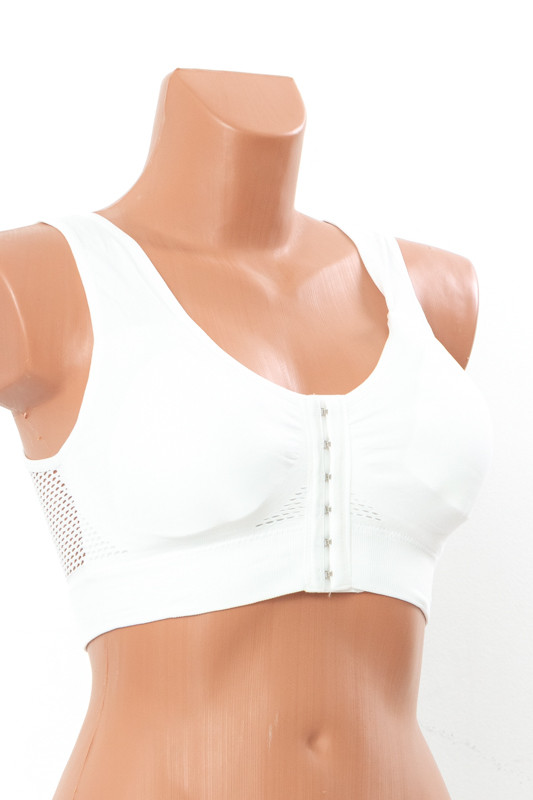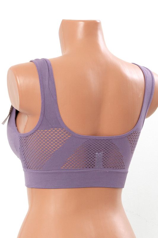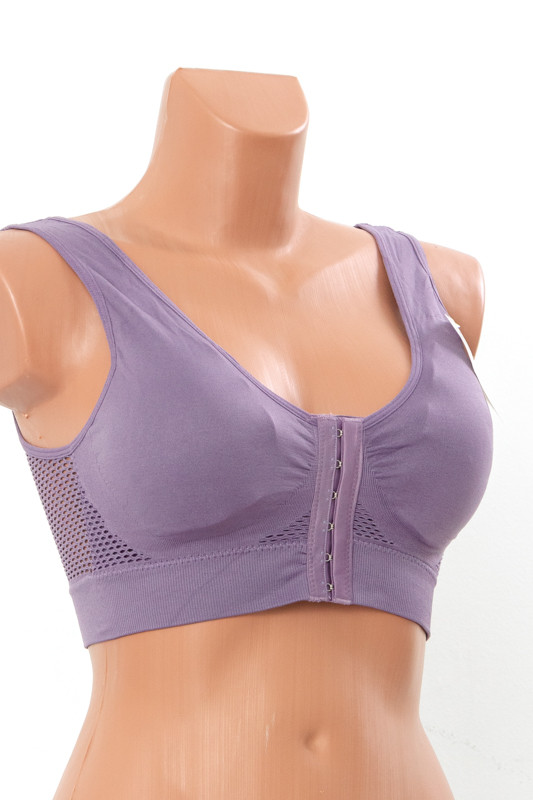 Спортивний топік із еластичного матеріалу з широкими бретелями. Підходить для спорту та повсякденного носіння. Застібка спереду на 6 гачків/3 подовження, поролонові знімні вкладиші. Зручна посадка та надійна підтримка. Без кісточки.