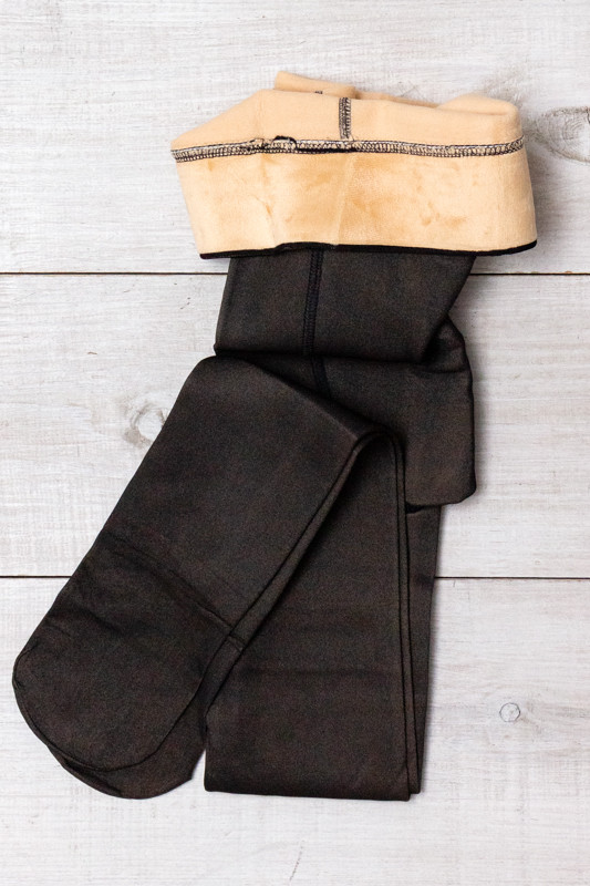 Комбінація флісу та капрону дозволяє створити візуальний ефект, ніби ніжки покриті колготками 20 Den. Виконані з флісової підкладки у тілесному відтінку, максимально наближеного до природного кольору шкіри та зовнішня частина колготок із тонкого капрону (чорного).