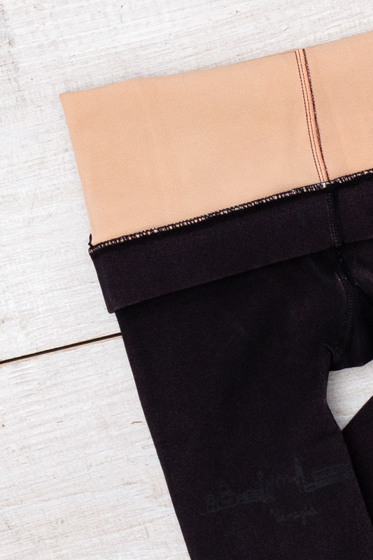 Колготи зсередини містять ніжну бежеву підкладку, яка створює ефект голих ніжок. Тканина цільна, не двошарова. З гарною еластичністю.