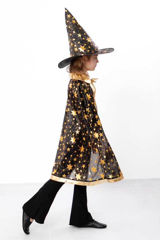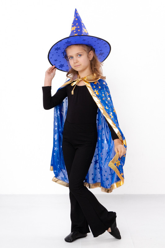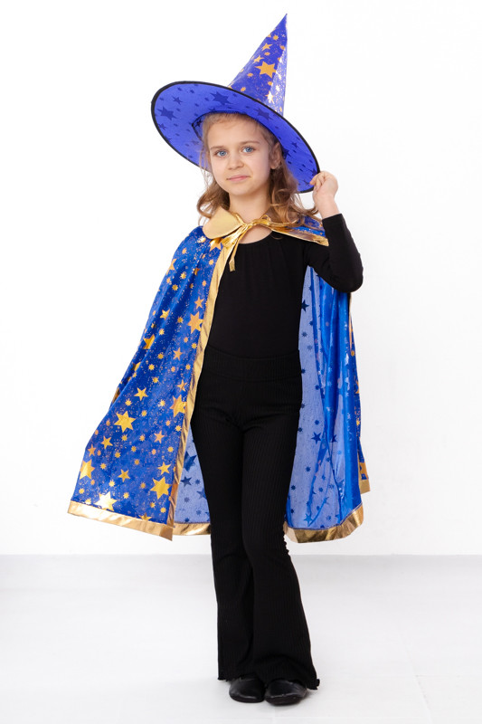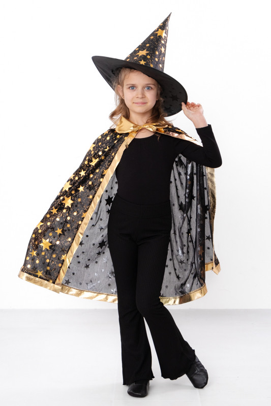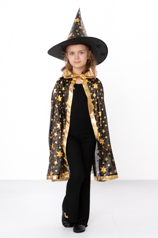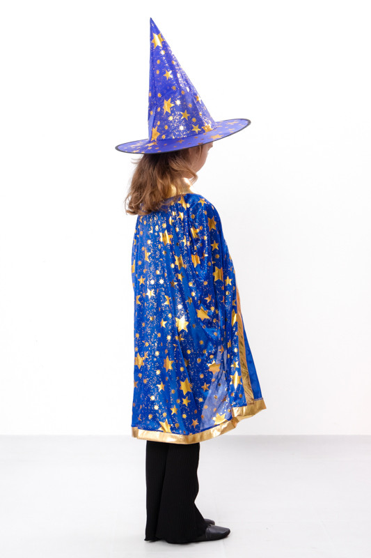 Висота ковпака 38см, діаметр ковпака з полями 42см, довжина плаща 80см, до комплекту входить - ковпак, плащ.
