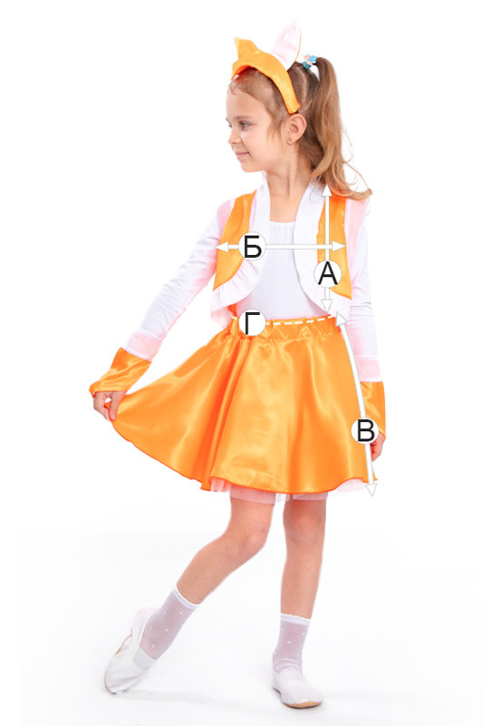 Чарівний карнавальний костюм дозволяє маленькій модниці відправитися на свято в ролі Лисички! Хитре і дотепне звірятко є героїнею багатьох казок, тому побувати в її ролі мріють багато маляток. Модель виконана з ряду полотен - атлас однотонний, велюр однотонний, фатин однотонний. У комплект костюма "Лисичка" входить: жилет, спідниця, обруч з вушками та рукавички. Порадуйте свою дитину карнавальним костюмом Лисички.