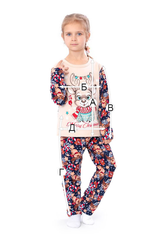 Дитячий одяг для сну має бути особливо якісним і зручним. У комплекті - класична пара:иштани і кофта з довгим рукавом. Штани прямі. На талії вони тримаються за допомогою резиночки. Модель виконана з однотонного начосу, декорована новорічним принтом.