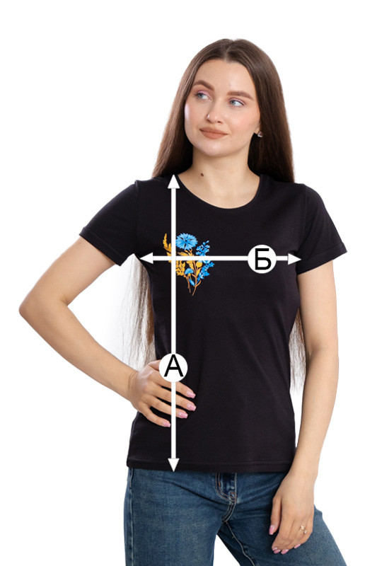 А - Довжина футболки від плеча (+/-2см)