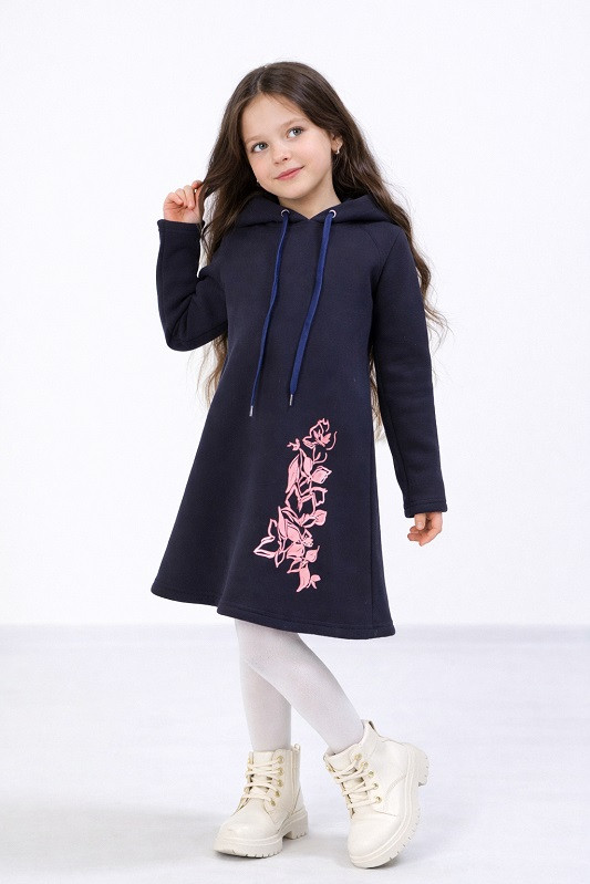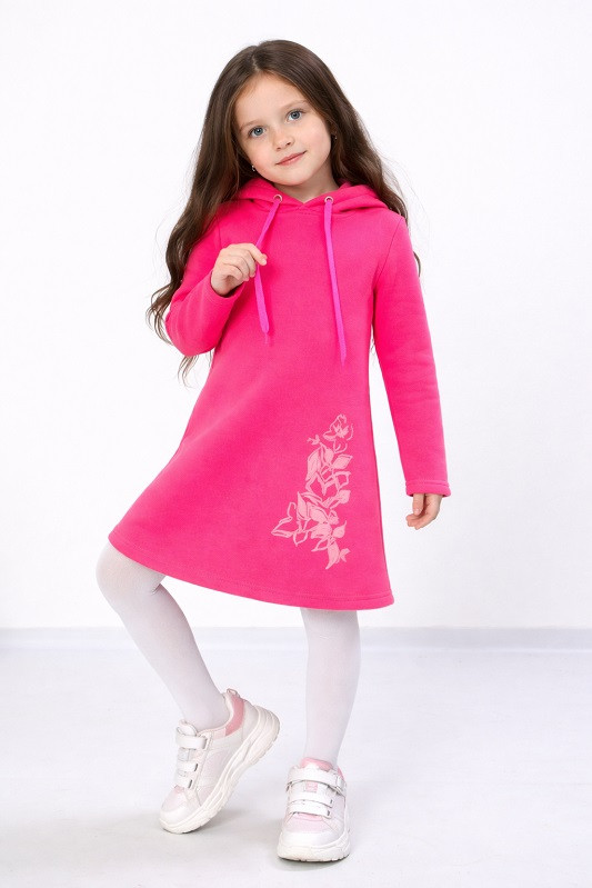Тепла однотонна сукня для дівчинки, виготовлена з м'якого і комфортного полотна 3-нитки з начосом. Модель вільного крою, представлена з капюшоном, виріб прикрашає ненав'язливий квітковий принт. Відмінно підходить для повсякденного носіння на прогулянці, в саду та школі. У нашій сукні ваша дитина буде комфортно почуватися, також вона не сковує руху. Сукня для дівчинки від ТМ "Трикотажний край" - це стильна та якісна річ на користь Вашої дитини!